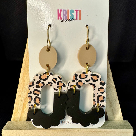 Leopard and Black Neutral Acrylic Dangle Earrings