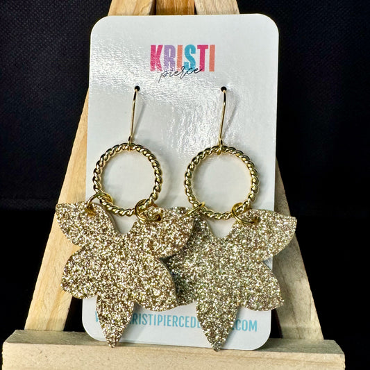 Gold Glitter Flower on Gold Circle Dangle Earrings