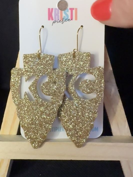 KC Cutout Gold Glitter Leather Arrowhead Chiefs EarringsRegular price $18.00 USDRegular priceUnit price per-