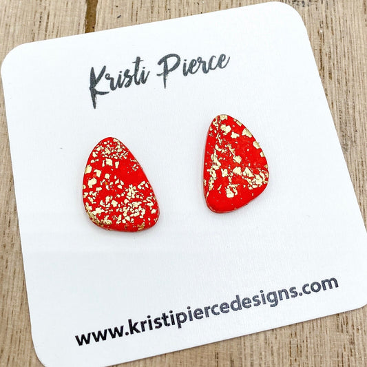 Metallic Gold Flake Pebble Shaped Clay Stud Earrings